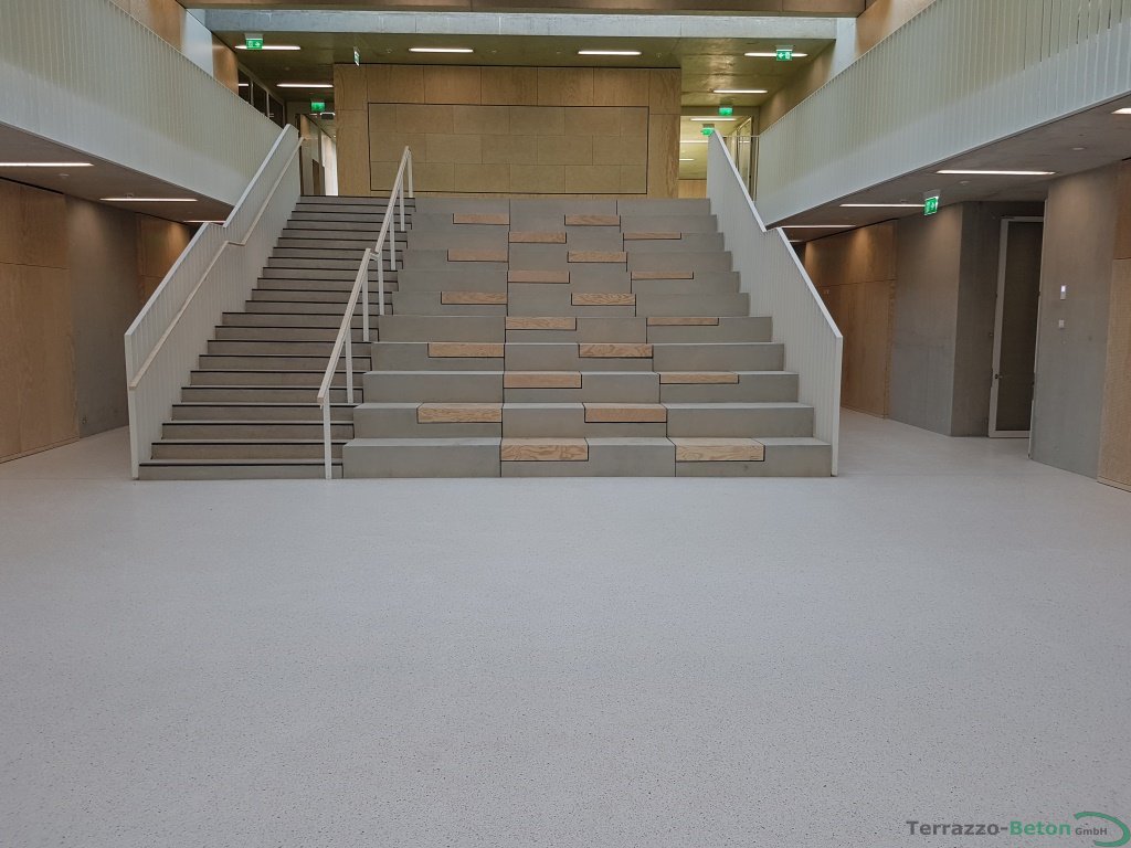 In Frankfurt verbauten wir in der Berkersheimer Schule 600 m² Terrazzoboden als Gussterrazzo.