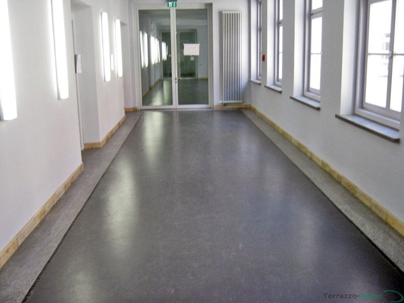 In München wurden in einem Bürogebäude in der Blumenstrasse 300 m² Terrazzoboden als Walzterrazzo verarbeitet und 500 m² Bestandsterrazzo aufgearbeitet.