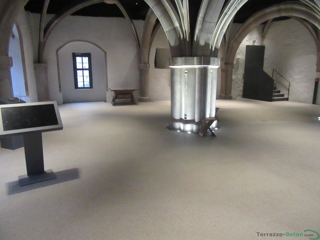 Die Kernburg in Cadolzburg erhielt 1.000 m² Terrazzoboden als Gussterrazzo, 50 m² Beschichtung und 400 m² Bestandssichtestrich aufgearbeitet.