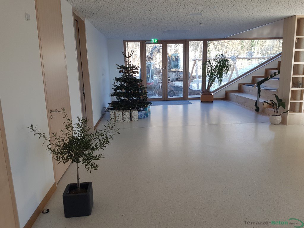 Im Kindergarten in Rottendorf bei Würzburg haben wir 300 m² Terrazzoboden als Gussterrazzo verbaut.