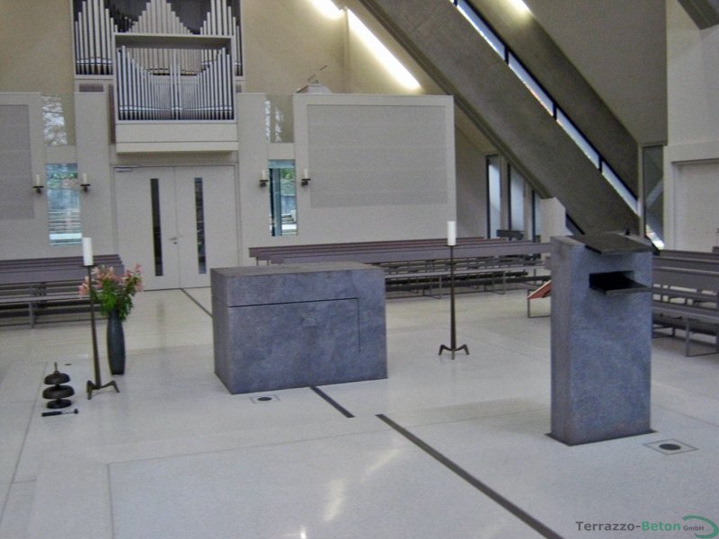 Unsere Leistung in der Kirche St. Margaretha in Heroldsberg waren 650 m² Terrrazzoboden als Gussterrazzo und 50 m Terrazzostufen zum Altar.
