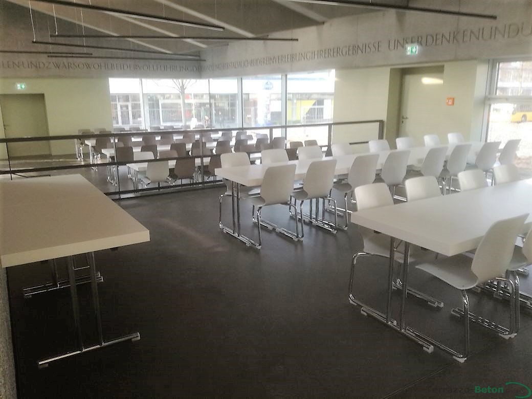 An der Universität in Stuttgart-Hohenheim erhielt die Mensa 550 m² Terrazzoboden als Gussterrazzo angeschliffen.
