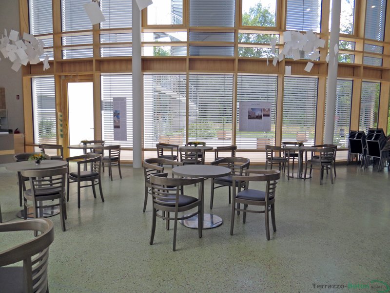 Unsere Leistung im Pflegezentrum in Sendlingen bei München: 600 m² Terrazzoboden als Gussterrazzo mit Glaszuschlägen.