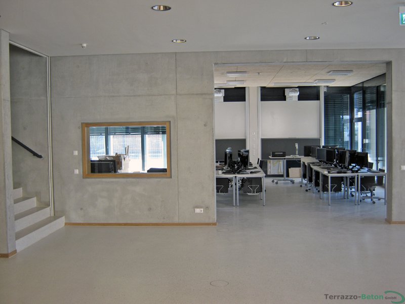 Die Technikerschule in Mindelheim erhielt 700 m² Terrrazzoboden als Gussterrazzo und 50 m Terrazzostufen.